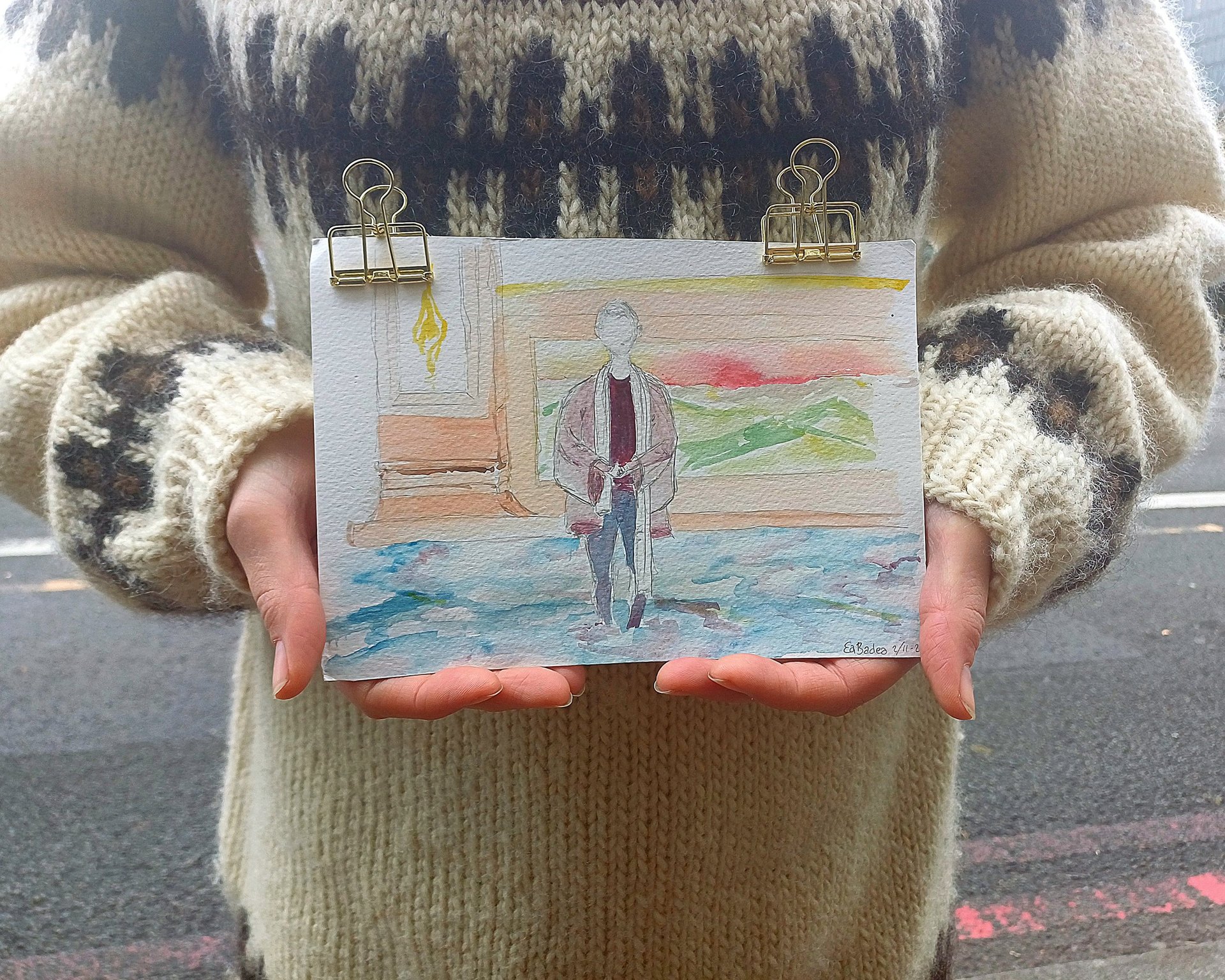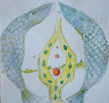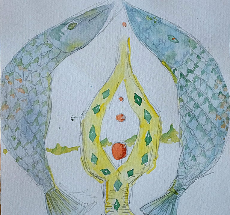 I had brought a travels' set of aquarelle and started expressing the images I saw behind the eyelids which one year later appeared to be the raw fundamentals of what later evolved into this project containing; graphic prints (intaglio print on zinc & cobber linoleum), photography, paintings, words and music.